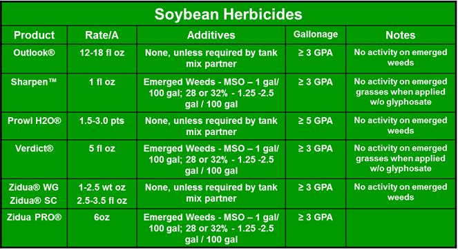 In soybean, 2,4-D or dicamba products can be added to aid in control (follow dicamba product labels when using). Remember to follow the required plant back restrictions when using auxin products in front of soybeans