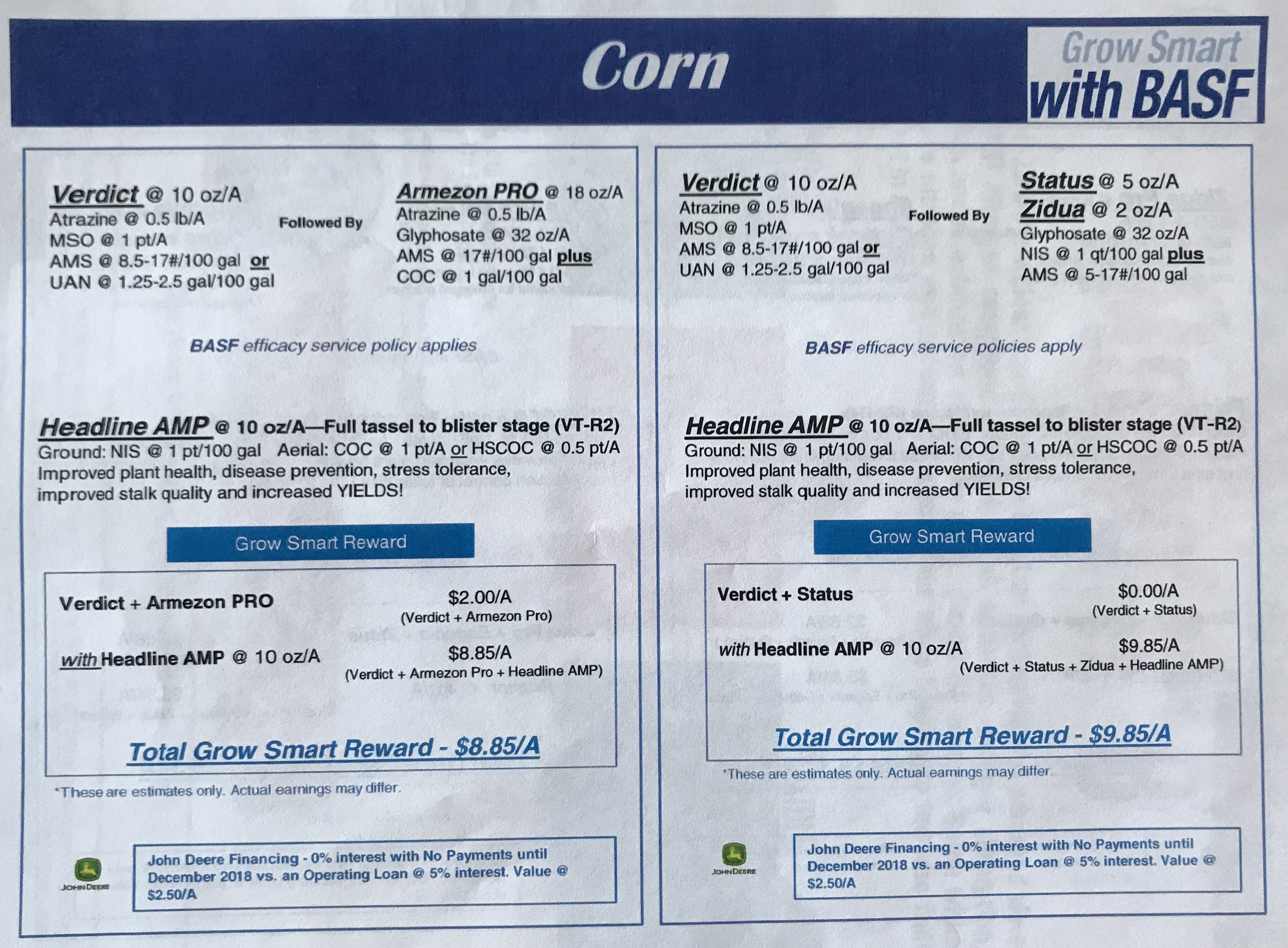 No enrollment necessary. Earnings will be calculated using retailer reported grower sales. Minimum purchase of 40 acres of Headline AMP or Priaxor are required to receive payment. If both Headline AMP and Priaxor are purchased, each brand must meet the 40 acre minimum purcahse requirement. Payment will be made to the grower by November 30, 2018.